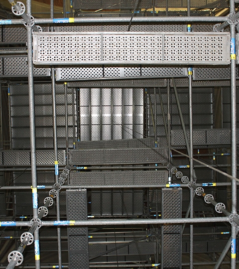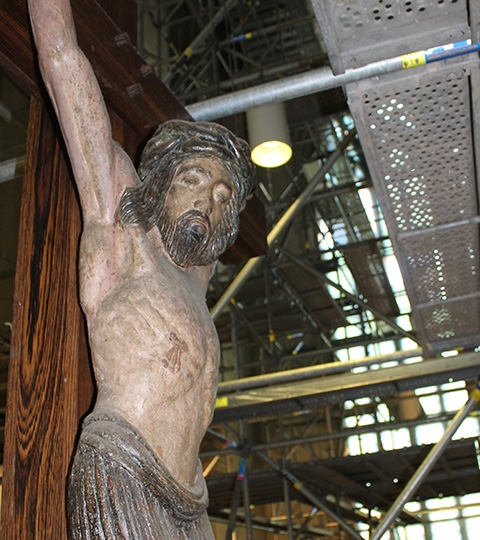 Die Gerüste und Höhenplattformen wurden so konstruiert, dass Maler, Tischler, Zähler oder Fassadenputzer alles erreichen und anfassen können. Die Gerüste sind 10 cm von den tragenden Kirchenpfeilern entfernt und bleiben in einem Arbeitsabstand zu den Fassadenwänden.