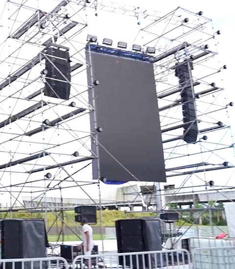 - Spacious scaffolding structures designed to hold large-format LED screens and lighting setups