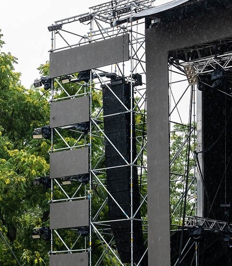 - PA & LED screen support towers - Large-scale festivals demand uncompromising safety. Towers capable of holding PA line arrays and heavy LED screens are assembled with AFIX FAST at precise angles for maximum coverage.