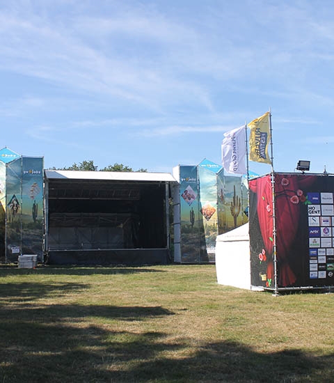 Evenementen – In de eventsector is het repetitieve en modulaire karakter van systeemsteigers bijzonder gewaardeerd. Decoratieve elementen (banners) of technische integraties (geluidssystemen) zijn eenvoudig te integreren in het geheel.