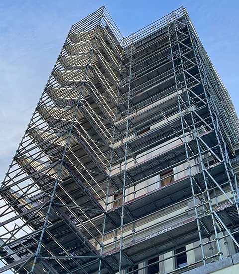 Stelmon koos voor Afix Fast systeemsteigers voor de uitvoering van dit 865 m2 project.