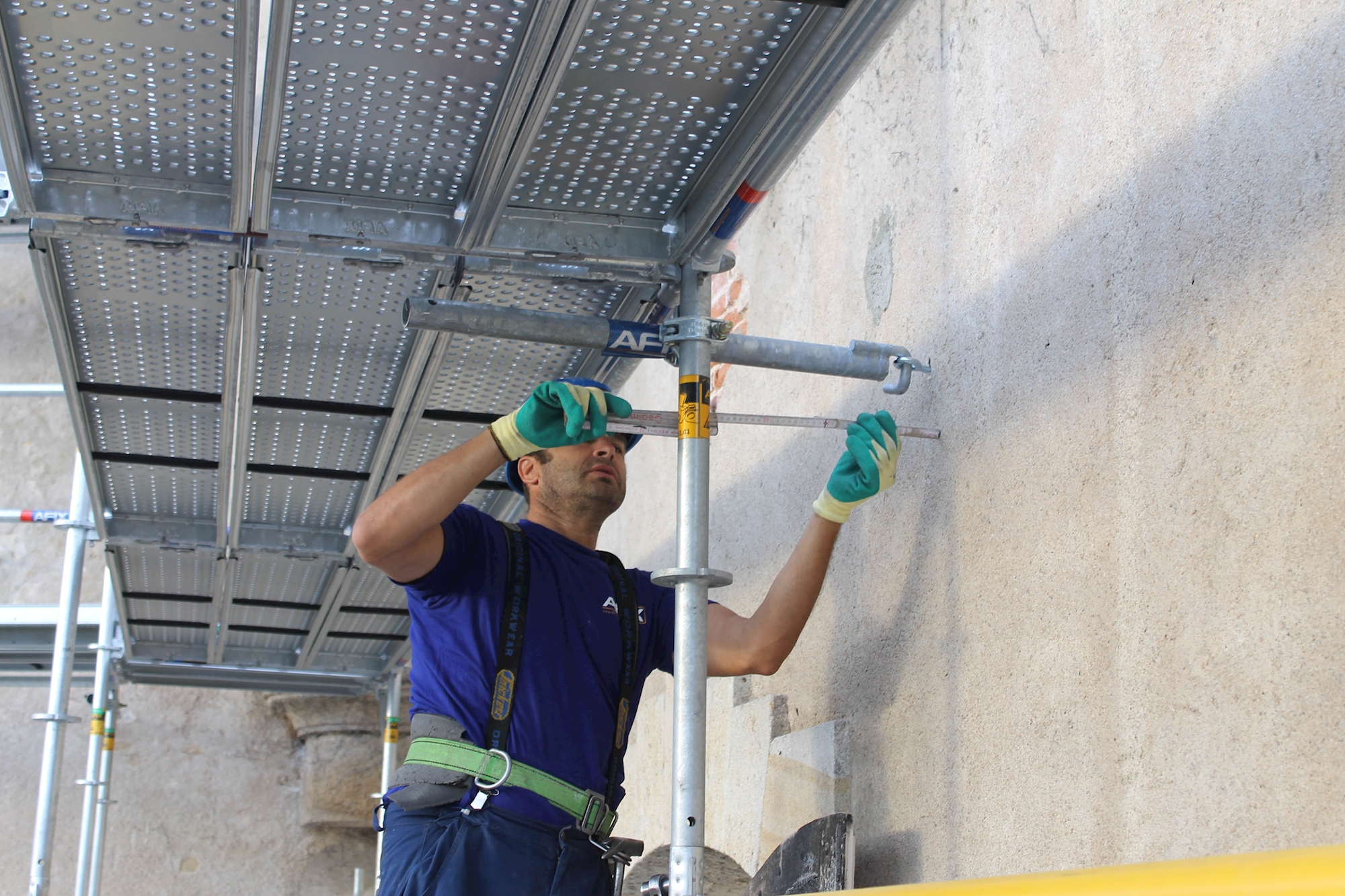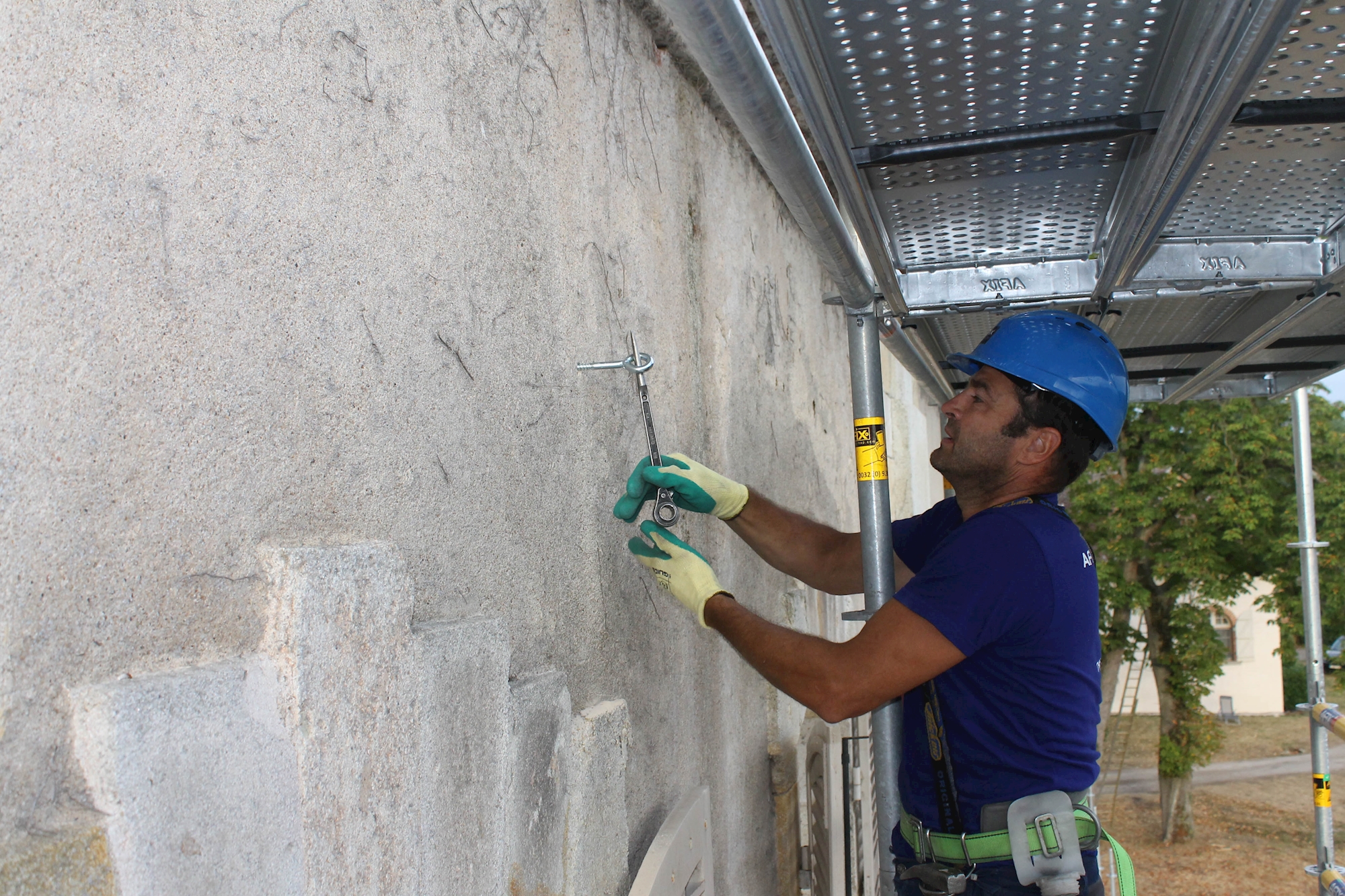 Anchoring for façade scaffolds must comply with European Standards EN 12810 and EN 12811 for temporary works.